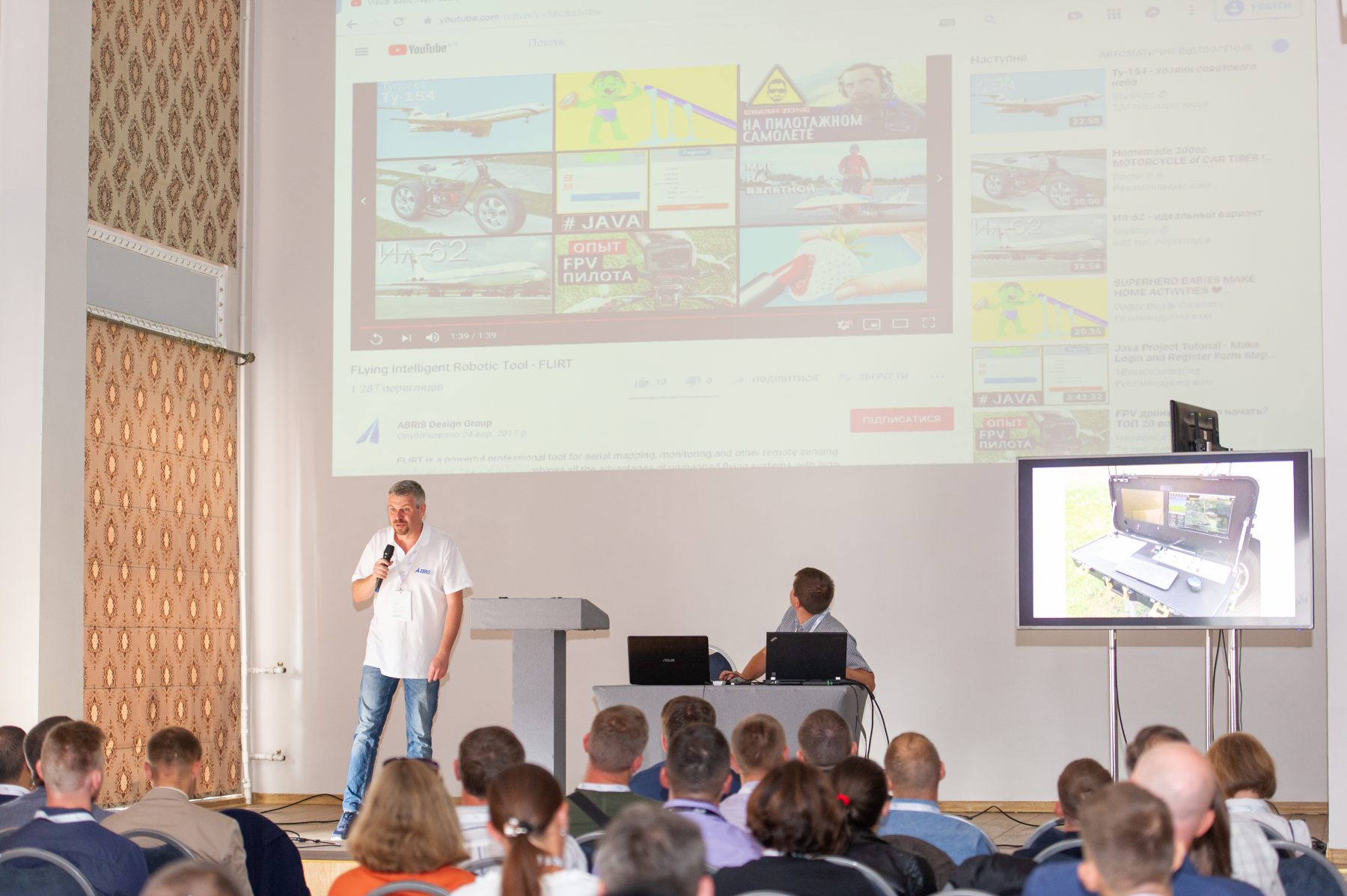 CTO of ABRIS DG Vadim Kolesnichenko presented at the conference the practical experience of UAV FLIRT users in aero-geodesic works and compared with the results of large manned aircraft.